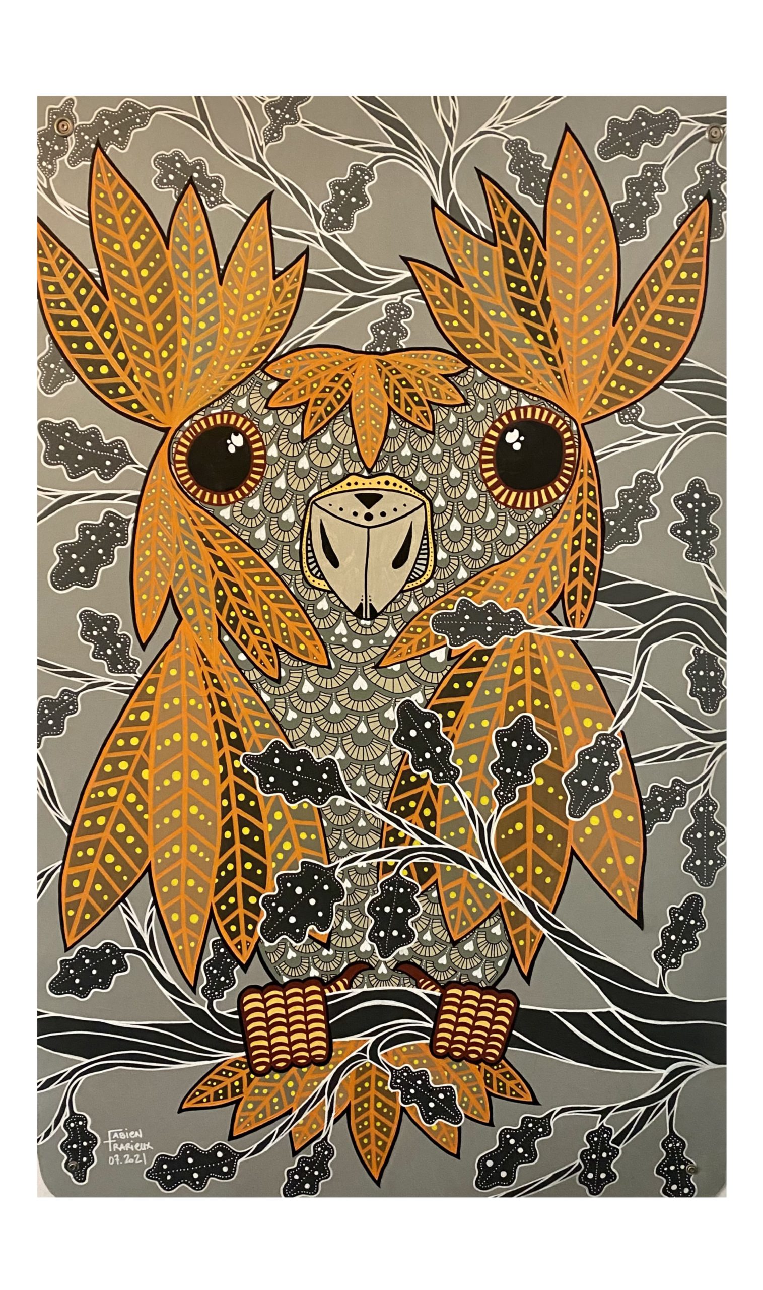 tableau acrylique au titre : chouette post-covid par fabien trarieux
