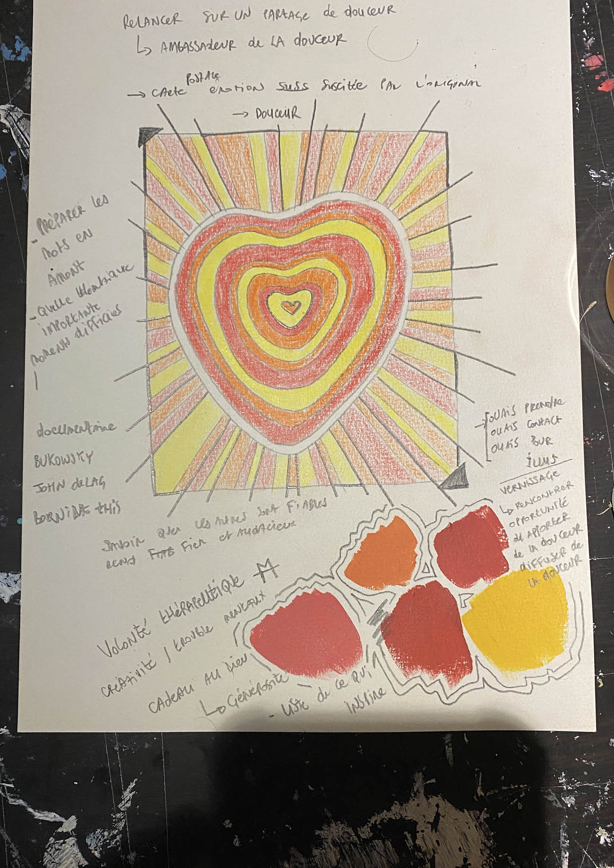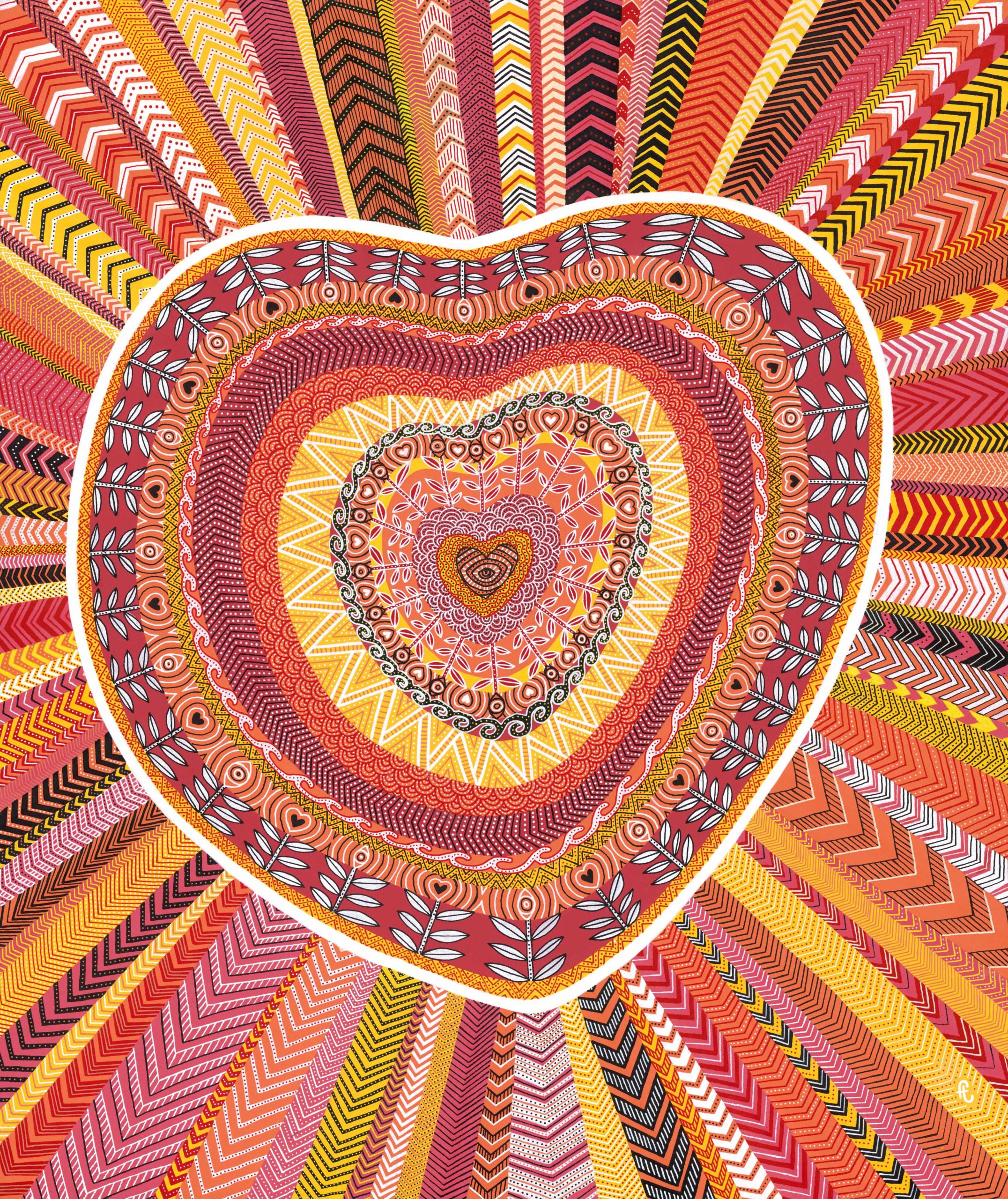 Je devais faire un cœur et comme c’était pour ma mère, la chanson d’Arno est apparue comme une évidence. Dans ce cœur, il devait y avoir des yeux, et jouer avec les détails, les couleurs et les formes pour y projeter diverses significations.