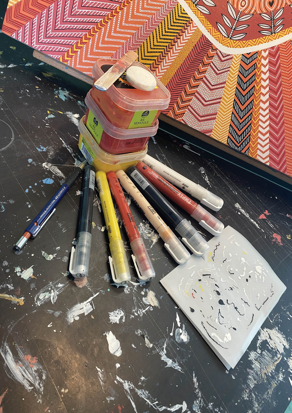 Je précise de nouveau que tout a été fait à main levée, au pinceau pour les aplats de couleurs et aux feutres acryliques pour les détails. Le tout sur un format de 52×58 cm. Voilà, même si j’ai pas mal dévoilé d’histoire et de liens personnels, je m’arrêterai là.