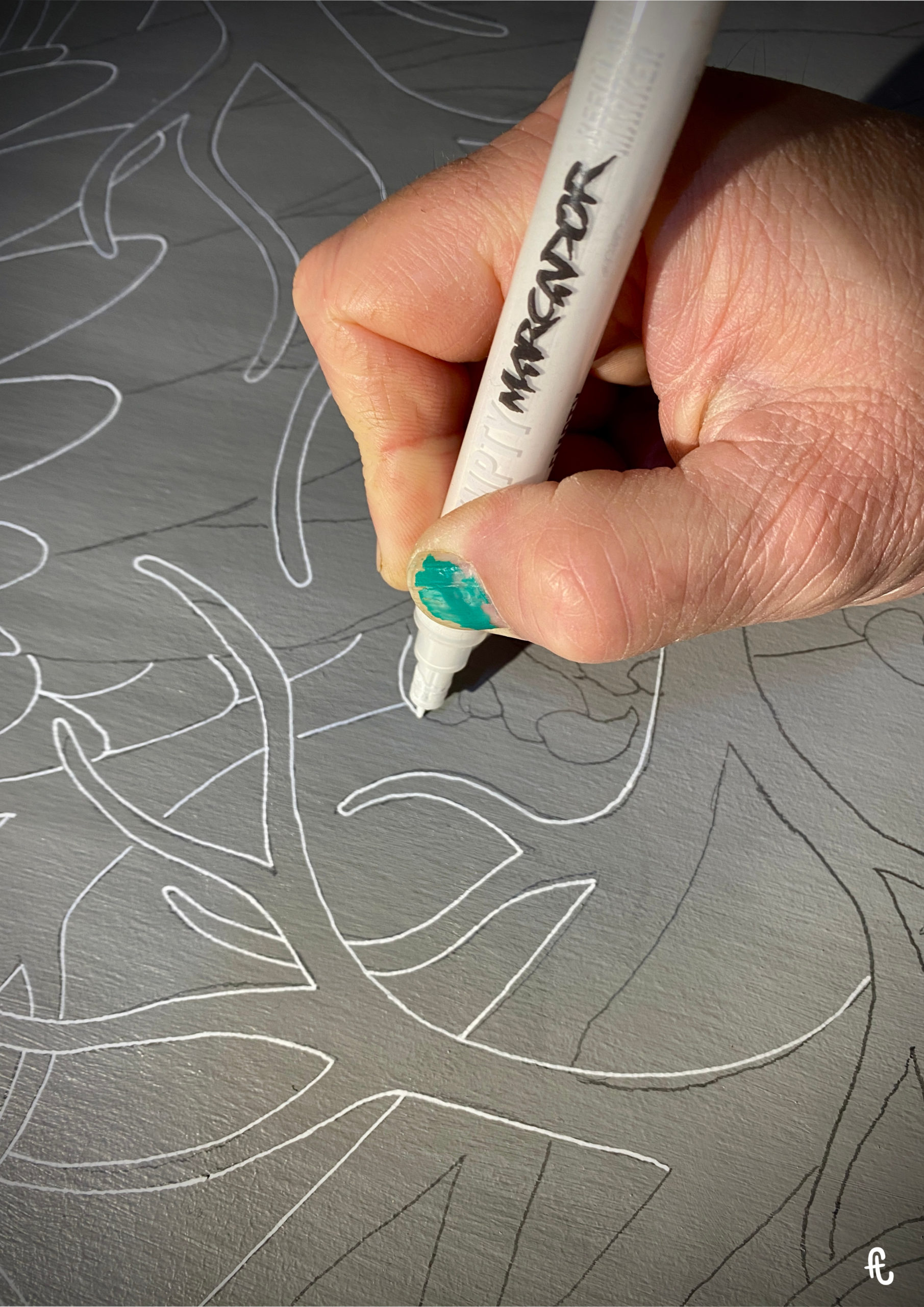 Avec le retour du temps plus clément, j’ai pu avancer sans transbahuter mon matériel dans la maison. Impossible d’évaluer le temps total passé sur la peinture tant il fut morcelé par mon quotidien. Mais je peux dire que ça a été looooooong. Au final, un grand « YES ! » est sorti de ma bouche quand j’ai posé ma signature.