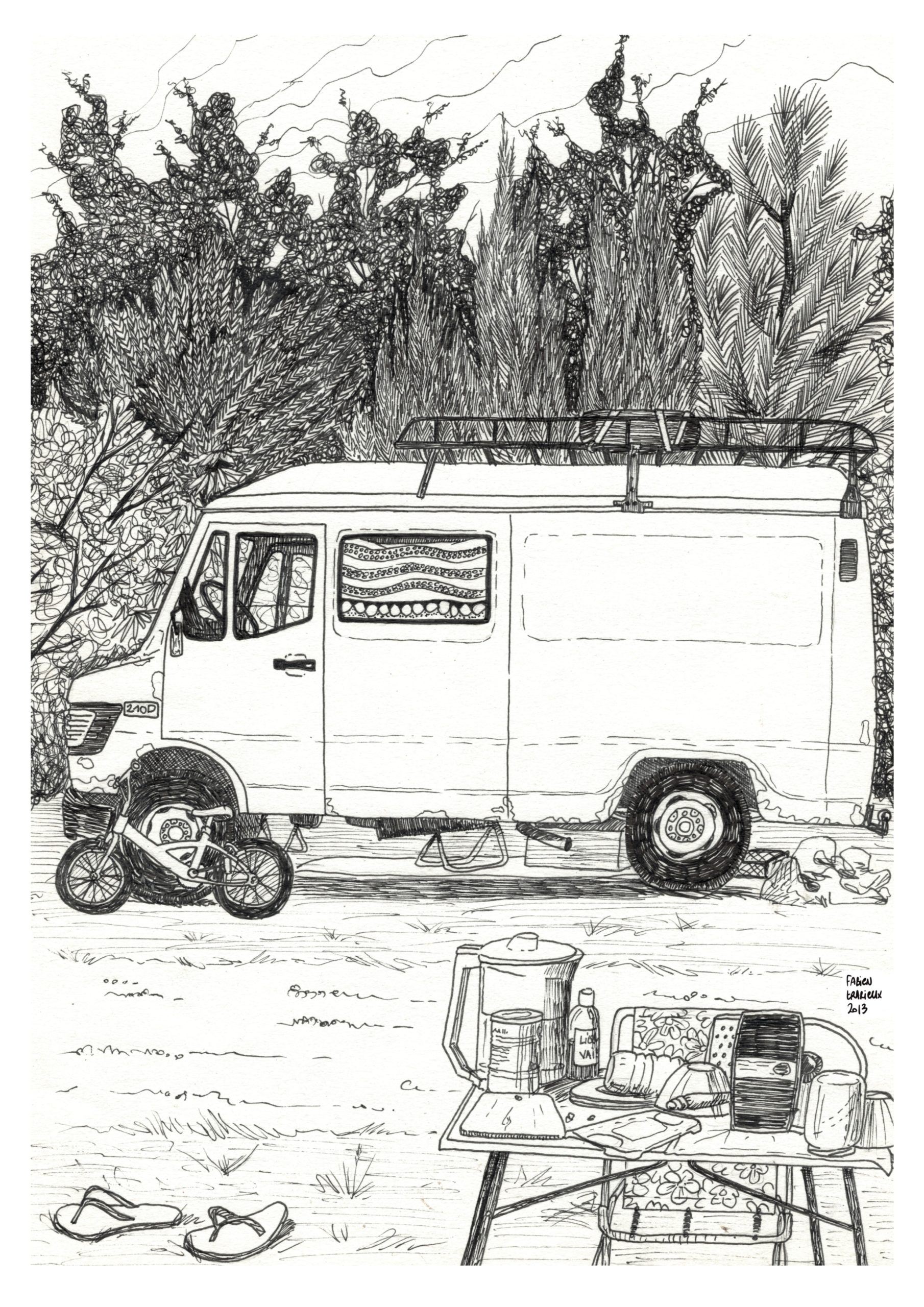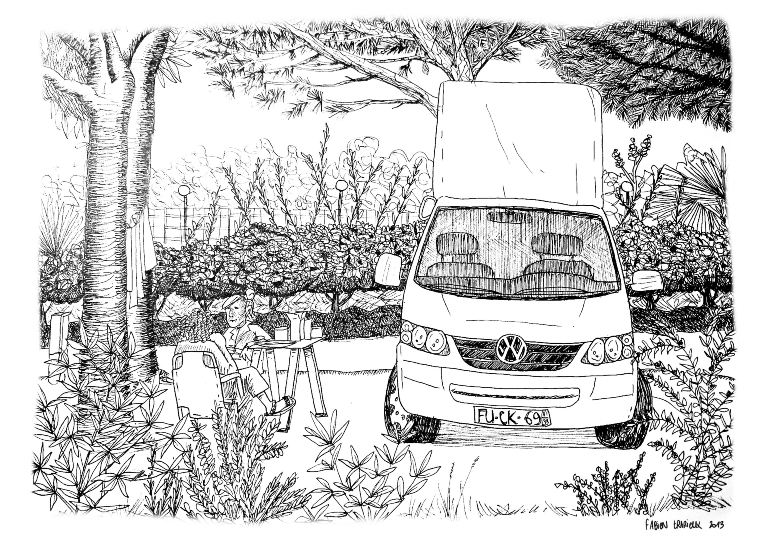 Depuis l’enfance, le dessin m’accompagne. Marges de cahiers, affiches pour le bar familial, puis, dès 2011, mes premières planches de bande dessinée inspirées par Trondheim, Larcenet, Giraud ou Boulet. Entre récits intimes et humour absurde, le trait devient exutoire.