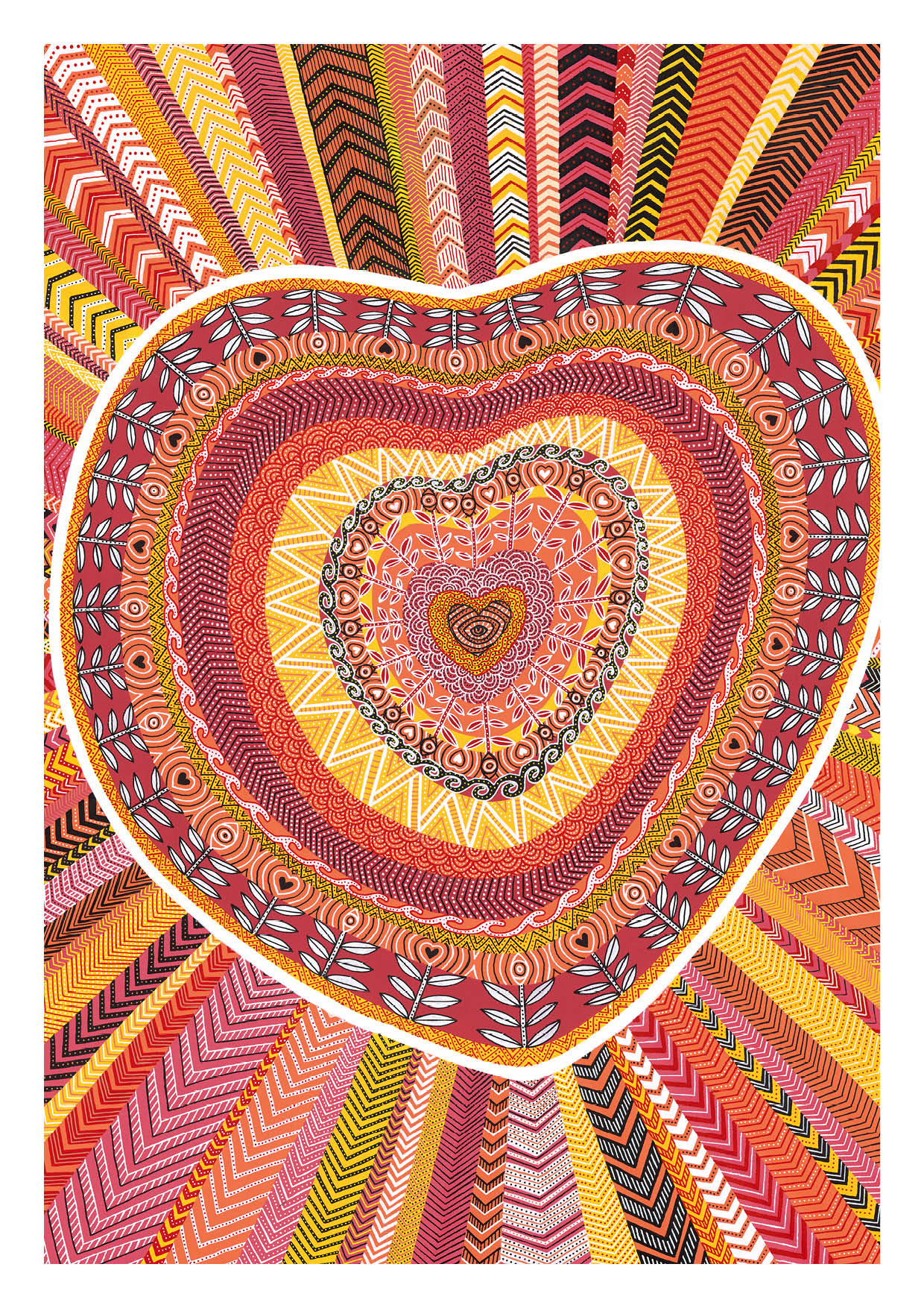 La reproduction est réalisée à partir d’un scan professionnel haute définition afin de respecter les couleurs, les formes et la matière de l’œuvre originale. Les motifs de flèches dirigés vers l’extérieur symbolisent la libération progressive et l’autonomie. Chaque exemplaire est imprimé en tirage limité, puis numéroté, daté et signé. Le façonnage est assuré par un ESAT.
