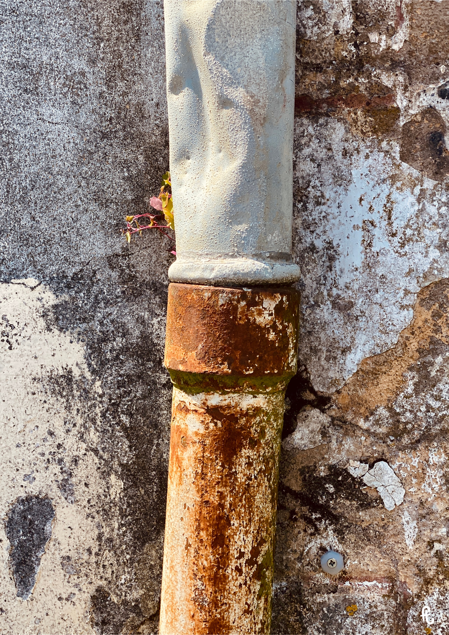 J’aime cet indicateur du temps qui passe. Il en émerge des formes et des couleurs abstraites. Elles attirent mon regard. Dès que les conditions idéales se présentent – luminosité adéquate, lieu accessible, sujet intéressant – l’objectif de mon téléphone portable s’enclenche. Je laisse mariner les photos le temps de mes divagations pédestres. De retour à la maison ou après plusieurs jours de macération, je sépare le grain de l’ivraie. Nombre d’entre elles atterrissent dans la poubelle. Certaines restent dans leur jus quand d’autres subissent de légères retouches via l’application native de mon appareil numérique.
