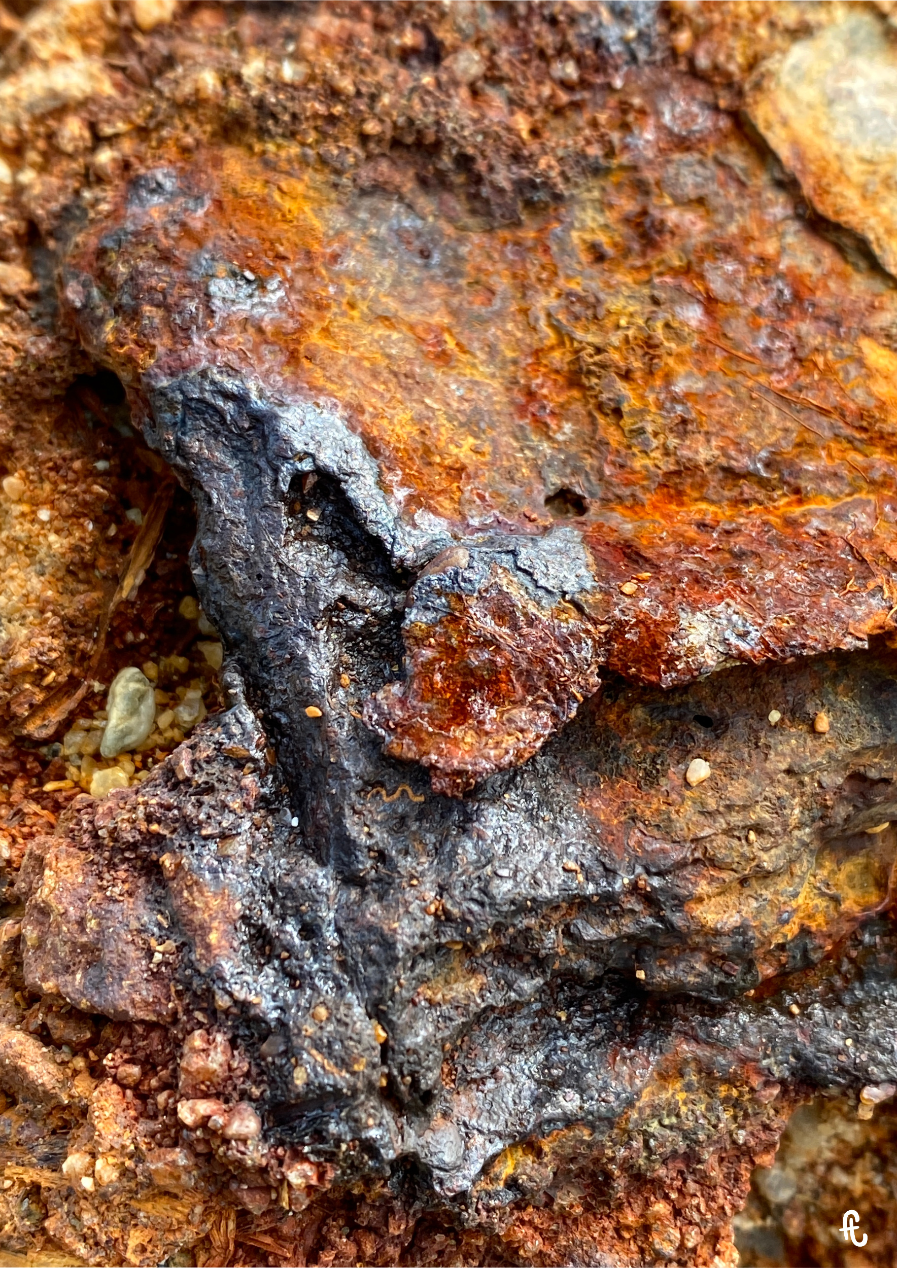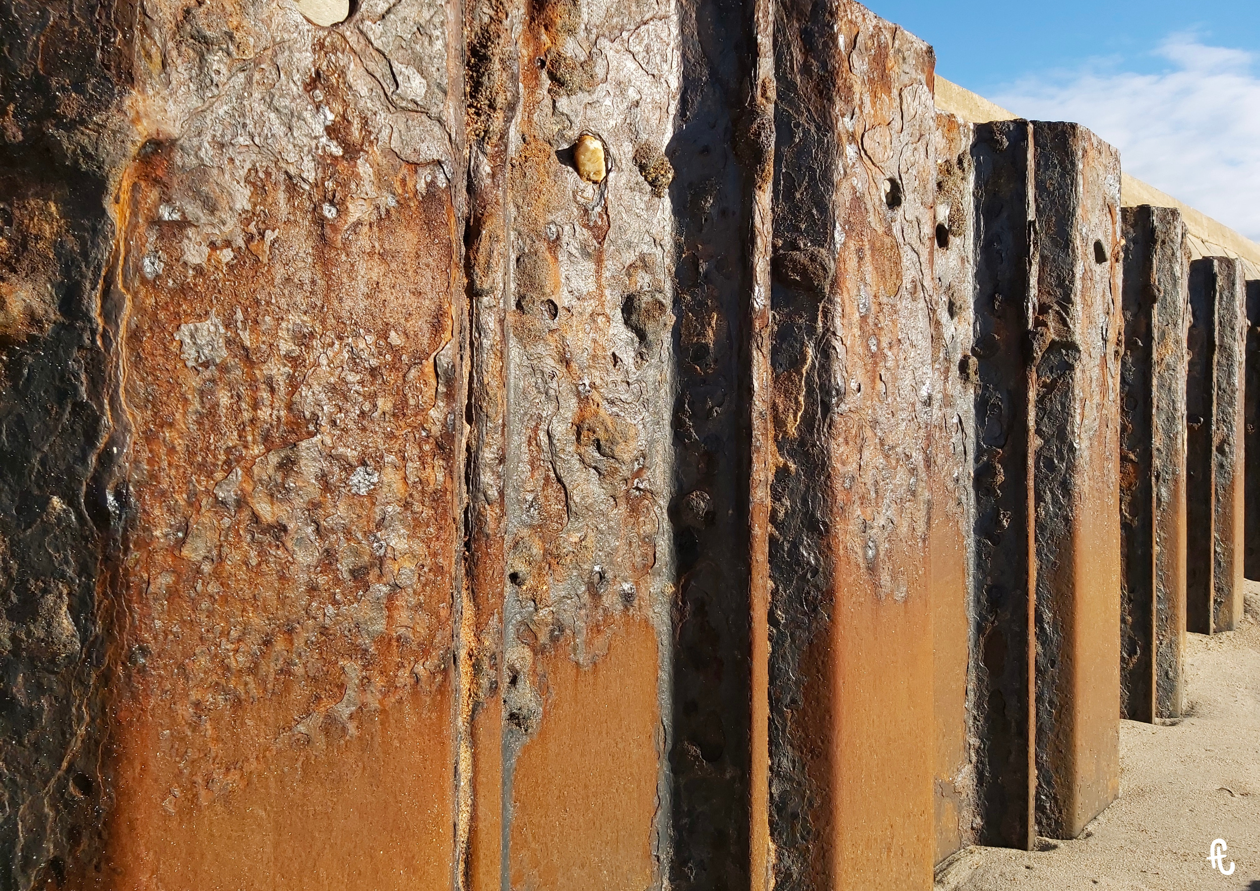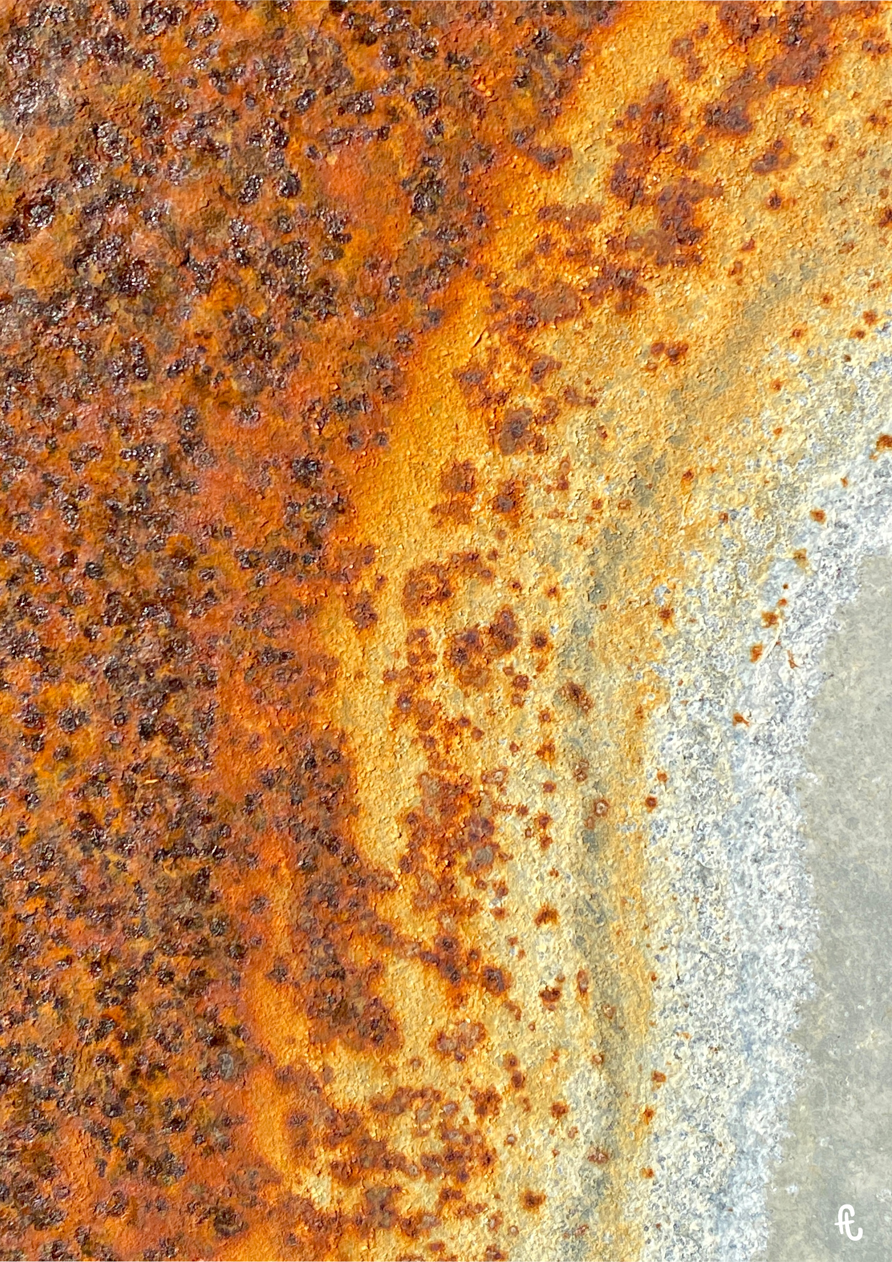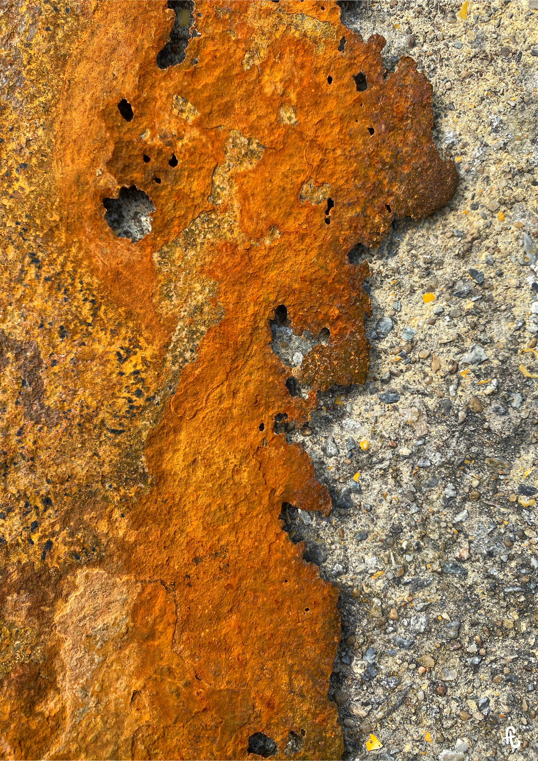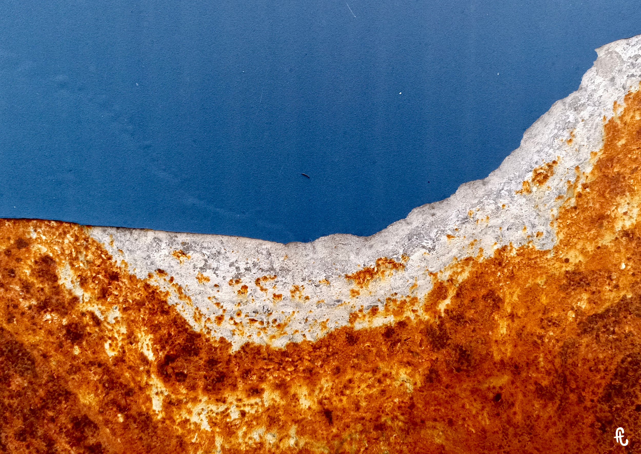 Depuis plusieurs années, ma pratique des photographies de textures naturelles se focalise sur la rouille, seule ou celle qui se lie à la roche, naturelle ou artificielle comme le ciment.